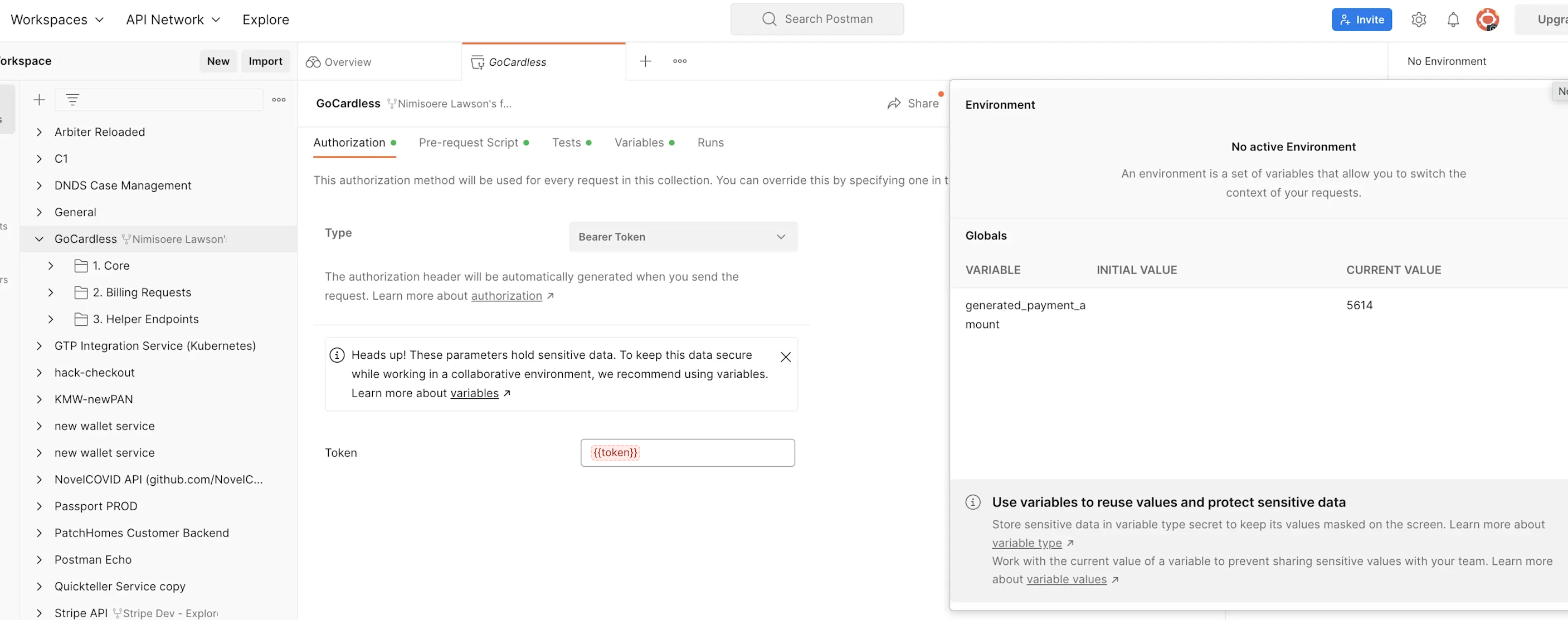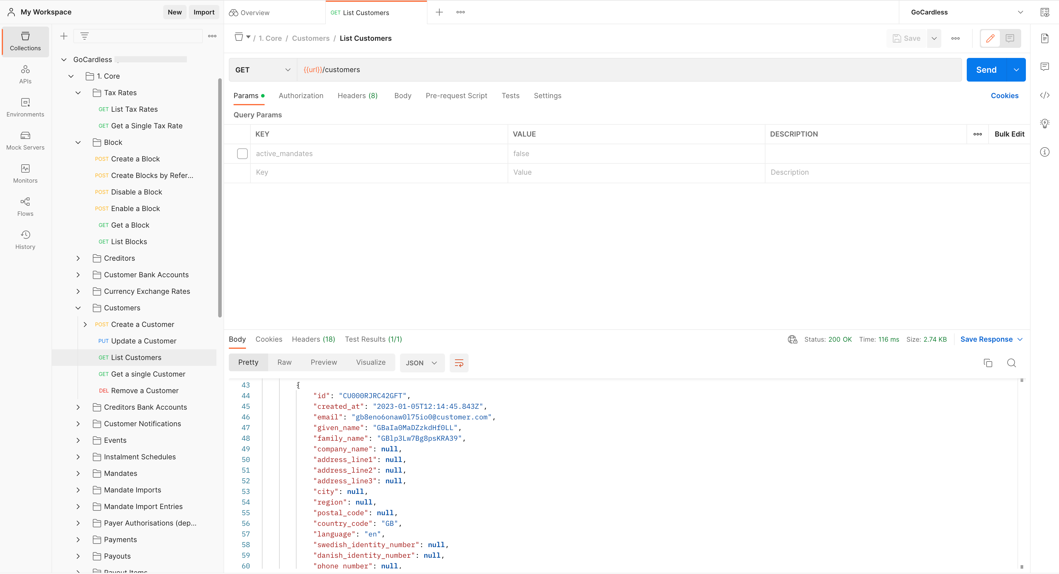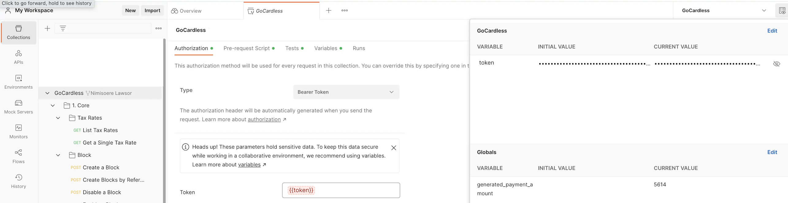 To get started you can fork the collection from Gocardless's public workspace within Postman.
